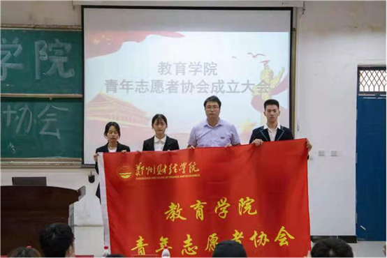 接着,胡亚东为教育学院青年志愿者协会授旗。